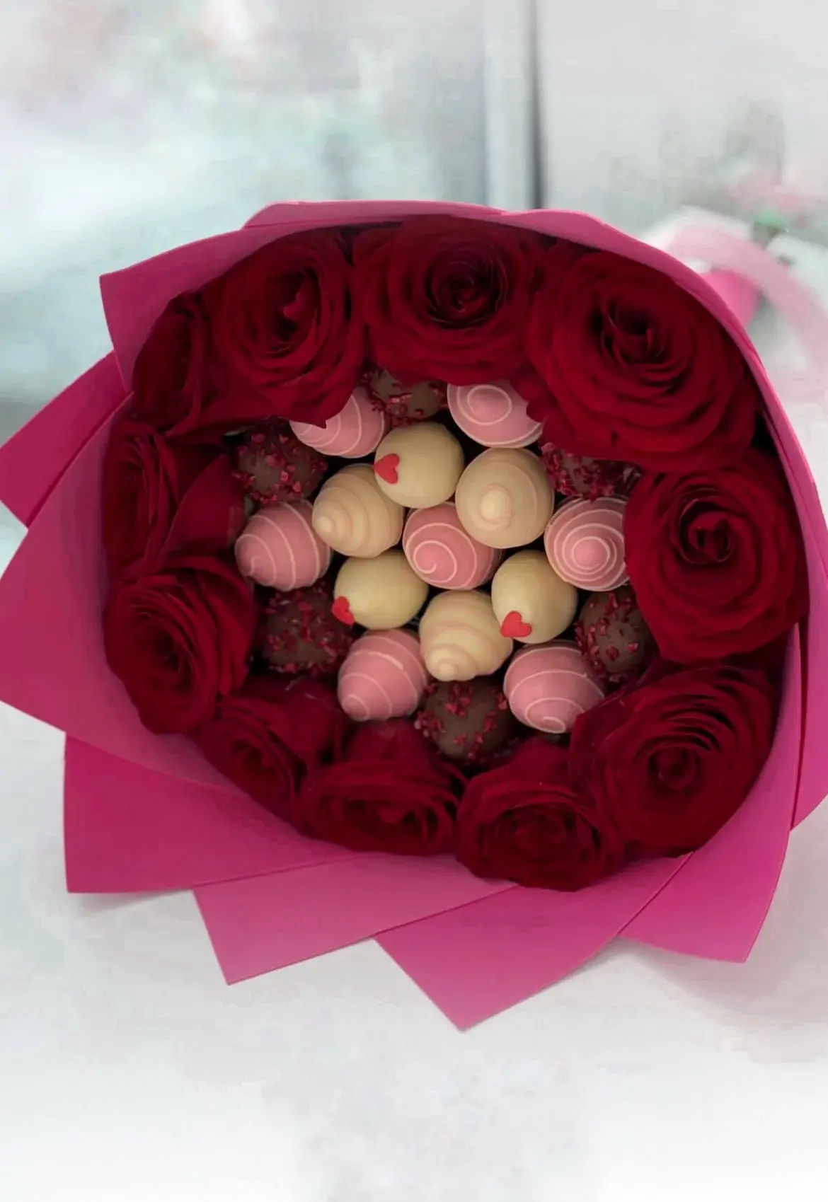 Нежный и вкусный сюрприз! Такой съедобный букет порадует бабушку-сладкоежку. Выбирайте вариант с нежным молочным шоколадом и украшениями из сухофруктов.