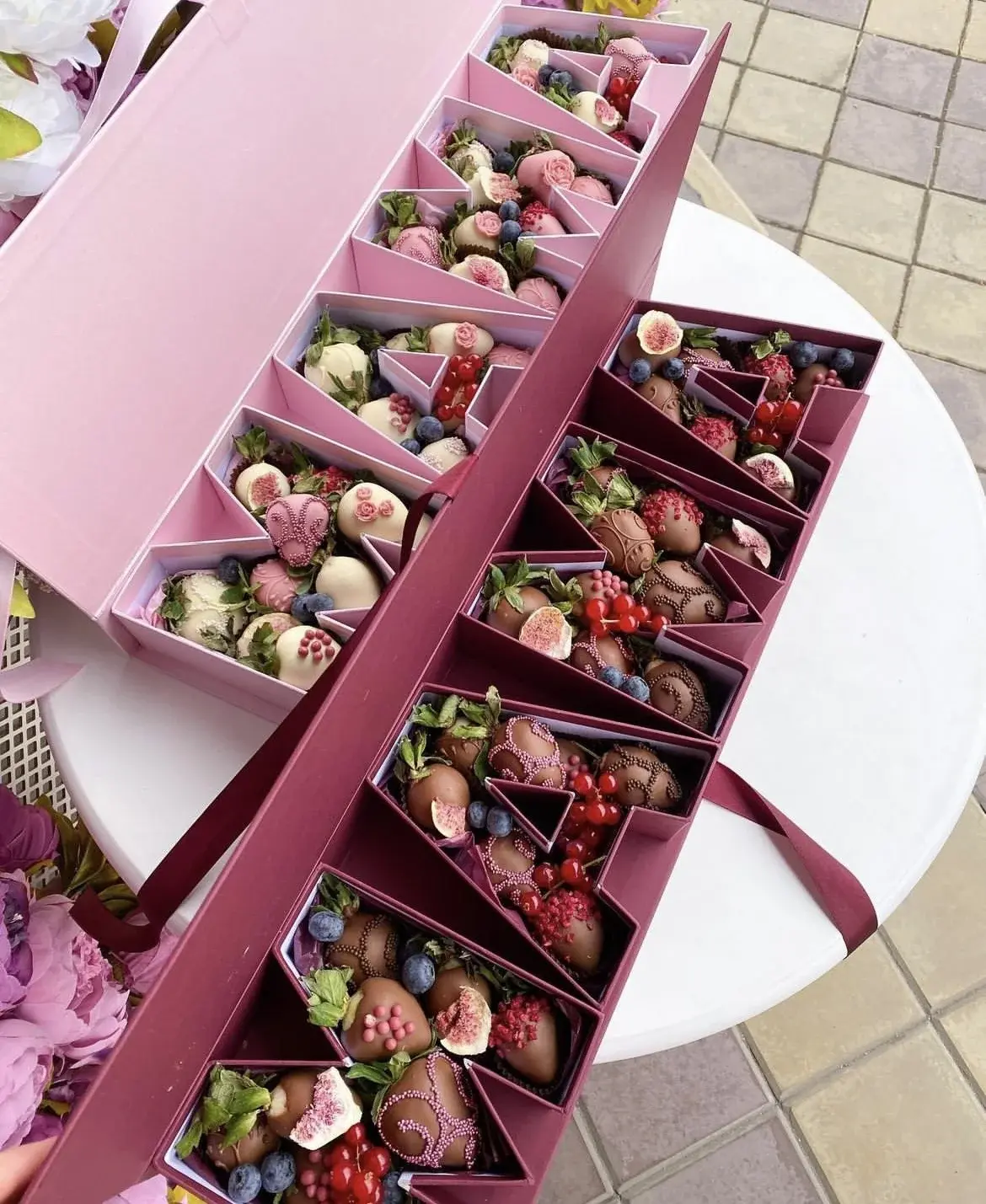 Сладкий, красивый и… съедобный! Такой букет – идеальный подарок для мамы-сладкоежки. Сочная клубника в глазури, украшенная орехами и топпингами, выглядит как произведение искусства. А главное – его не нужно ставить в вазу, ведь его можно съесть! 🎁